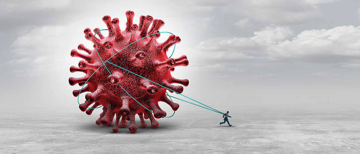 Mensch zieht Corona Virus hinter sich her© wildpixel / iStock / Getty Images Plus