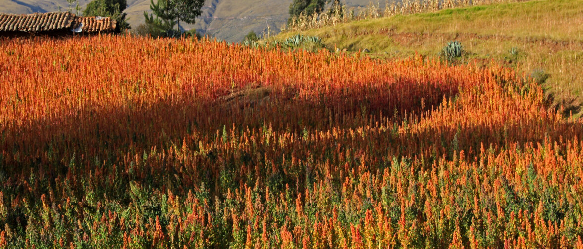 In der Andenregion steht Quinoa (Chenopodium quinoa WILLD.) bereits seit etwa 5000 Jahren auf dem Speiseplan. Die Samenkörner der einjährigen Pflanze aus der Familie der Fuchsschwanzgewächse (Amaranthaceae) sind seit altersher das Hauptnahrungsmittel der Bergvölker und damit eine Alternative zu anderen sonst in Südamerika verzehrten Getreidearten. Darauf nimmt auch ihre bei uns gebräuchliche Bezeichnung Inka-Getreide Bezug.
