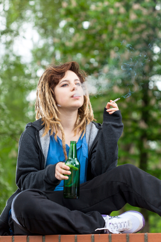 Wird das Umfeld als schwierig empfunden, reagieren Teenager oft mit Risikoverhalten, zu dem auch der Drogenkonsum zählt. Die daraus resultierenden Folgen werden zugunsten der kurzfristigen Befriedigung der eigenen Bedürfnisse ausgeblendet. Ein ungünstiger Freundeskreis kann das Interesse an Drogen zusätzlich begünstigen: Die Nachahmung älterer Freunde, positive Erfahrungsberichte von Gleichaltrigen oder der Wunsch nach Anpassung an die Gruppe sind potenzielle Ursachen für einen Einstieg.