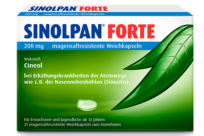 Sinolpan® forte 200 mg, magensaftresistente Weichkapseln; Wirkstoff: Cineol