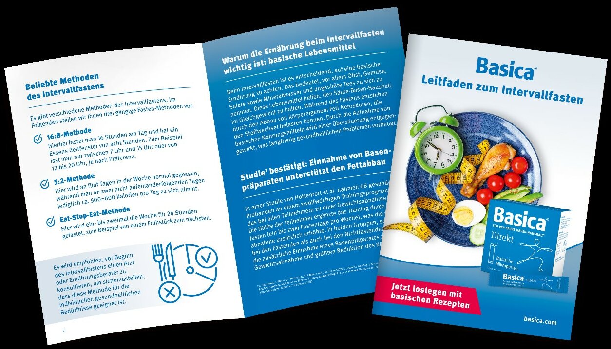 Heute ist für viele eine langfristige Gewichtsabnahme die häufigste Motivation, um zu fasten. In der neu entwickelten Broschüre von Basica® - Leitfaden zum Intervallfasten finden Sie wertvolle Informationen und Tipps, wie Ihre Kund:innen Intervallfasten einfach in den Alltag integrieren können, welche Rolle Basica® dabei spielt und wie es ihnen helfen kann, ihre Ziele zu erreichen.