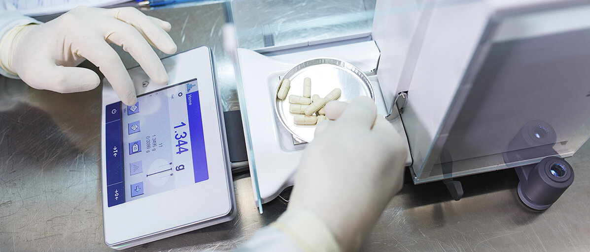 Diese bestimmte Pulvermenge wird nun ebenfalls an der Analysenwaage abgewogen und für die Dokumentation notiert. Ich verwende eine leicht abgeänderte Form der Ergänzungsmethode bei der Kapselherstellung:
