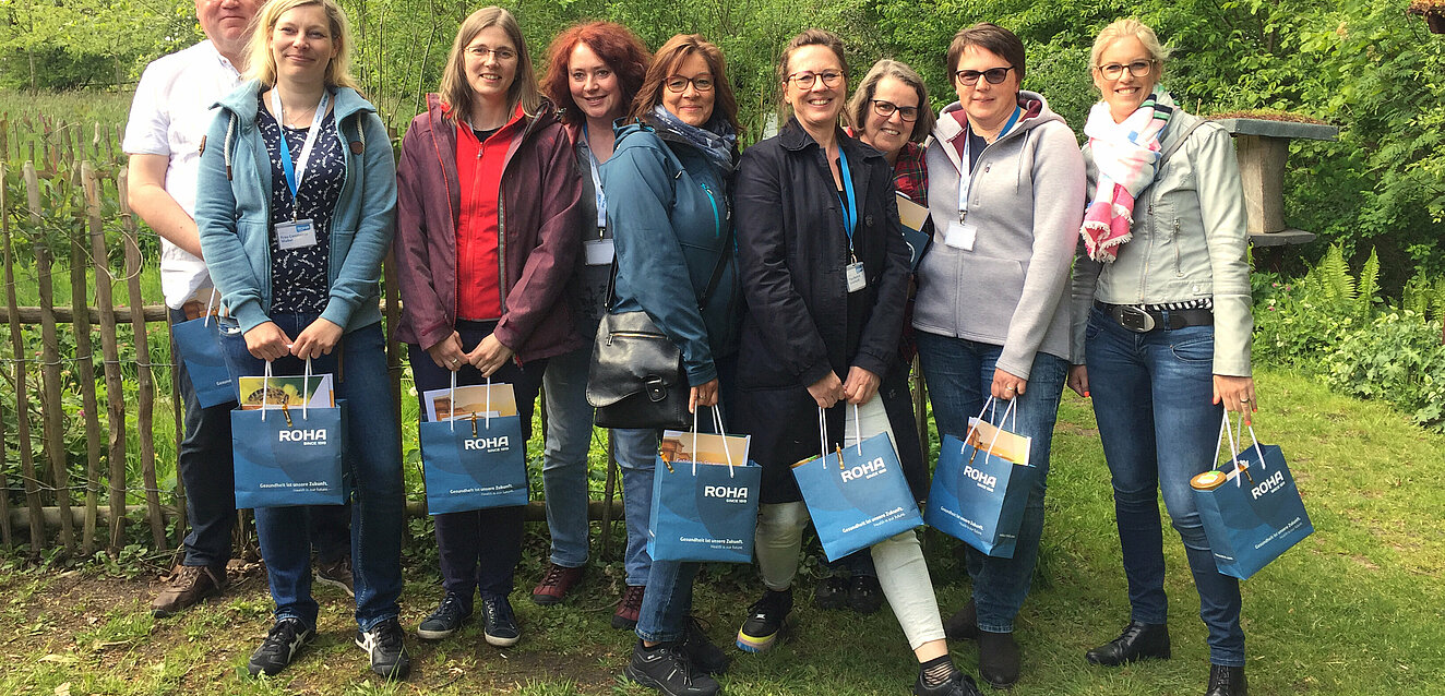 Pünktlich um 10 Uhr an einem sonnigen Tag im Mai trafen sich die acht ApothekenmitarbeiterInnen am Empfang des Arzneimittelherstellers in einem Ortsteil von Bremen. Während sie sich an einem Imbiss von der Anreise stärken konnten, erhielten sie schon die ersten Informationen. Zum Beispiel, dass die Firma ROHA in diesem Jahr ihr 100-jähriges Jubiläum feiert und in der dritten Generation als Familienunternehmen geführt wird.