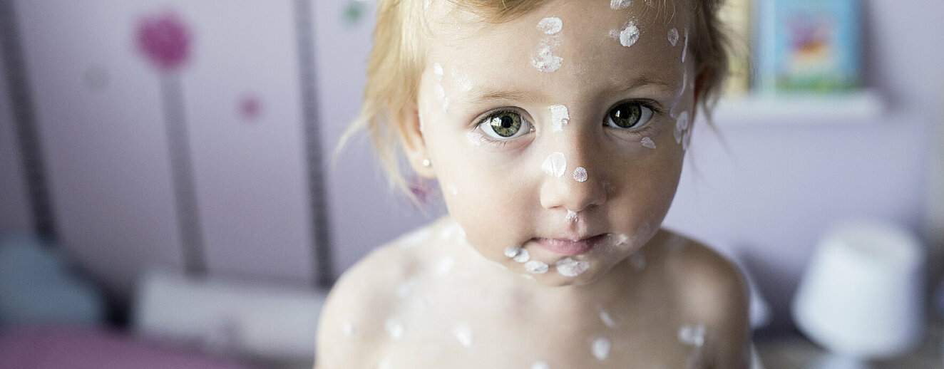 Fast jeder Kontakt führt zu einer Ansteckung. Nach einem erkältungsähnlichen Vorstadium zeigt sich ein stark juckender Hautausschlag, der sich pustulös umwandelt und verkrustet. Dabei sind rote Flecken, Bläschen und Krusten nebeneinander als „Heubner-Sternenkarte“ zu sehen. Da die Windpocken mit einer hohen Komplikationsrate (z. B. Enzephalitis, Meningitis, bakterielle Superinfektionen) behaftet sind, zählt die Varizellen-Impfung zu den Standardimpfungen der STIKO.