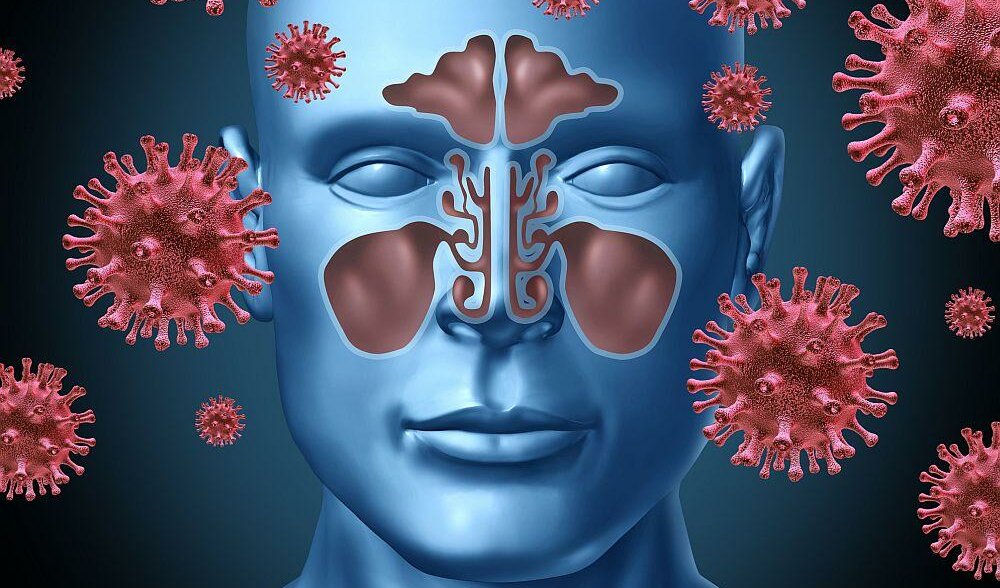 Bei der Sinusitis entzünden sich die Schleimhäute der Nasennebenhöhlen. Sind die Schleimhäute beispielsweise aufgrund eines Schnupfens angeschwollen, kann das schleimige Sekret nicht mehr abfließen. Die Ostien, also die Übergänge zwischen Nasenhaupthöhle und Nebenhöhlen, sind verschlossen, die Belüftung funktioniert nicht mehr. Also sammelt sich der Schleim in den Nebenhöhlen an. Zu der zunächst viralen Infektion können sich nun Bakterien gesellen.