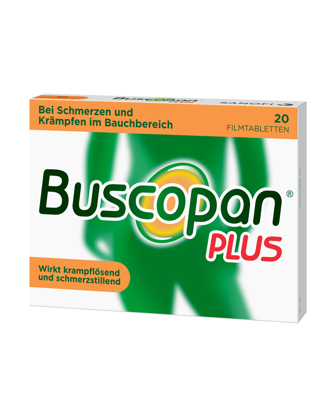 Buscopan® Dragées. Wirkst.: 10 mg Butylscopolaminiumbromid/Dragée. Sonst. Bestandt.: Sucrose, Calciumhydrogenphosphat, Maisstärke, Talkum, hochdisperses Siliciumdioxid, Arabisches Gummi, Povidon, Weinsäure, Stearinsäure, Macrogol 6000, Carnaubawachs, gebleichtes Wachs, Titandioxid (E171). Anw.-geb.: Zur Behandlung von leichten bis mäßig starken Spasmen des Magen-Darm-Traktes, sowie zur Behandlung spastischer Abdominalbeschwerden beim Reizdarmsyndrom. Gegenanz.: Überempfindlichkeit gegen Butylscopolaminiumbromid oder einen der sonstigen Bestandteile, mechanische Stenosen des Magen-Darm-Trakts, Megakolon, Harnverhaltung bei subvesikaler Obstruktion (z. B. Prostataadenom), Engwinkelglaukom, Tachykardie, Tachyarrhythmie, Myasthenia gravis. Nebenw.: Hautreaktionen, Überempfindlichkeitsreaktionen bis zum anaphylaktischen Schock mit Blutdruckabfall und Flush, Dyspnoe, Tachykardie, Schwindel, Blutdruckabfall, Akkommodationsstörungen, Glaukomanfall, Hemmung der Speichelsekretion, Diarrhoe, Übelkeit, Erbrechen, Magenbeschwerden, Hemmung der Schweißsekretion, Miktionsstörungen, Müdigkeit. Warnhinweis: Enthält Sucrose. Buscopan® plus Filmtabletten. Wirkst.: 10 mg Butylscopolaminiumbromid und 500 mg Paracetamol/Filmtablette. Sonst. Bestandt.: Mikrokristalline Cellulose, Carmellose-Natrium, Ethylcellulose, Maisstärke, Talkum, hochdisperses Siliciumdioxid, Magnesiumstearat, Titandioxid (E 171), Macrogol 6000, Polyacrylat-Dispersion 30 % (Eudragit NE 30 D), Hypromellose, Simeticon. Anw.-geb.: Bei krampfartigen Schmerzen bei Erkrankungen des Magens und des Darmes, krampfartigen Schmerzen und Funktionsstörungen im Bereich der Gallenwege, der ableitenden Harnwege sowie der weiblichen Geschlechtsorgane (z. B. Dysmenorrhoe). Gegenanz.: Überempfindlichkeit gegen die Wirkstoffe oder einen der sonstigen Bestandteile, mechanische Stenosen des Magen-Darm-Trakts, Megakolon, Harnverhaltung bei subvesikaler Obstruktion (z. B. Prostataadenom), Engwinkelglaukom, Tachykardie und Tachyarrhythmie, Myasthenia gravis, Schwere hepatische Insuffizienz. Nebenw.: Hautreaktionen, Hemmung der Speichelsekretion, Diarrhoe, Übelkeit, Erbrechen, Magenbeschwerden, Hemmung der Schweißsekretion, Tachykardie, Schwindel, Müdigkeit, Anstieg der Lebertransaminasen, Miktionsstörungen, Quincke-Ödem, Schweißausbruch, Bronchospasmus (Analgetika-Asthma), Thrombozytopenie, Agranulozytose, Leukopenie, Panzytopenie, Akkommodationsstörungen, Glaukomanfall, Dyspnoe, schwere Überempfindlichkeitsreaktionen bis zum anaphylaktischen Schock mit Blutdruckabfall und Flush. Apothekenpflichtig
