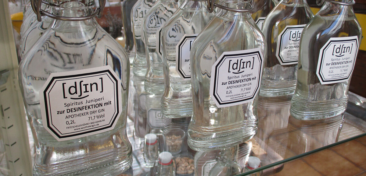 Ursprünglich diente der traditionelle Schnaps gesundheitlichen Zwecken: vor allem zur Malariaprophylaxe, aber auch um die Verdauung anzukurbeln und als Einreibung bei rheumatischen Beschwerden wurde der Gin verwendet. Nun könnte die Spirituose wieder einen pharmazeutischen Sinn erfüllen: laut Hersteller sei der Spiritus Juniperi mit Apotheker Dry Gin "antibakteriell und viruzid wirksam zur Handdesinfektion, dem aromatischen Desinfizieren des Mund- und Rachenraumes sowie allen Oberflächen".