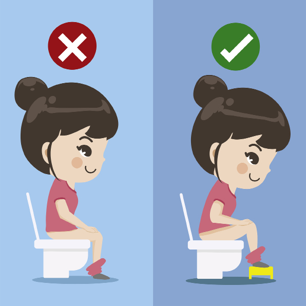 Beim Stuhlgang auf der Klobrille wie auf einem Stuhl zu sitzen, ist für die meisten Menschen selbstverständlich. Um die Darmentleerung zu erleichtern, kann jedoch eine etwas andere Körperhaltung günstig sein: die Hocke. Der Grund: Im normalen Sitzen weisen Rücken und Oberschenkel einen 90-Grad-Winkel auf und der letzte Teil des Darms ist gekrümmt. In der Hockstellung dagegen sinkt der Tonus der Beckenbodenmuskulatur und der Darm verläuft gerade. Das macht angestrengtes Pressen auf dem stillen Örtchen überflüssig. Gut so, denn es ist ein Irrglaube, Pressen gehöre zum Toilettengang dazu. Vielmehr müssen wir uns entspannen, damit sich der Darm entleeren kann.