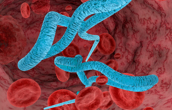Bei dem Ebola-Virus handelt sich um einen fadenförmigen, manchmal auch u-förmig gebogenen Erreger, dessen Erbinformation in Form von RNA vorliegt. © tagota / 123rf.com