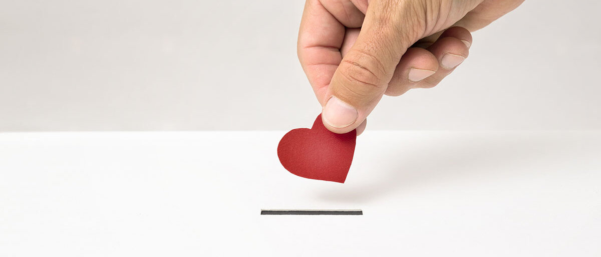 Eine Hand wirft ein Herz aus Papier in den Briefschlitz einer weißen Box.© wabeno / iStock / Getty Images Plus