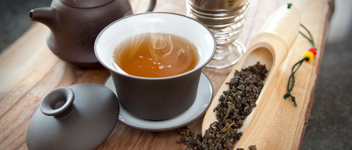 Oolong Tee ist halbfermentiert. Seine Blätter werden nach der Ernte nicht wie etwa bei Grüntees erhitzt, sondern sie welken klassisch in der Sonne. Dann werden sie sanft gerollt, um eine Fermentation herbeizuführen.