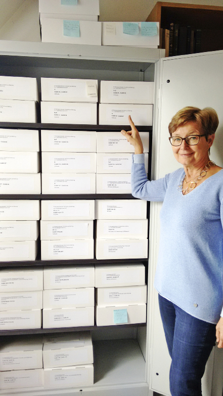 Durch eine Glastür kann man bis in den Hörsaal schauen, der daliegt, als habe der Professor ihn gerade erst verlassen. Ulrike Enke schmunzelt: Ein Team von der Tagesschau habe anlässlich eines Berichtes über den 100. Todestag einmal gefragt, ob sie dort drehen könnten. In Marburg ist eben alles Geschichte. Und wenn Ulrike Enke auf die Pappkartons zeigt, deren Inhalt noch bearbeitet werden muss und bei denen zwei studentische Mitarbeiter helfen, sie in den Computer zu übertragen, ahnt man, wieviel Arbeit es ist, Geschichte lebendig werden zu lassen.