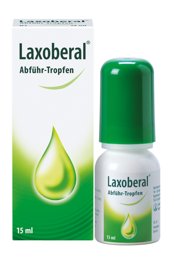 Laxoberal® Abführ-Tropfen. Wirkstoff: 7,78 mg Natriumpicosulfat-Monohydrat/1 ml. Sonst. Bestandteile: Natriumbenzoat, Sorbitol-Lösung 70%, Natriumcitrat-Dihydrat, Citronensäure- Monohydrat, gereinigtes Wasser. Anwendungsgebiete: Zur Anwendung bei Obstipation sowie bei Erkrankungen, die eine erleichterte Defäkation erfordern. Wie andere Abführmittel sollte Laxoberal®-ohne differentialdiagnostische Abklärung der Verstopfungsursache nicht täglich oder über einen längeren Zeitraum eingenommen werden. Gegenanzeigen: Ileus, Darmobstruktion, akute Bauchbeschwerden wie Appendizitis, akut entzündliche Erkrankungen des Magen-Darm-Traktes, starke Bauchschmerzen in Verbindung mit Übelkeit und Erbrechen, schwere Dehydratation, Überempfindlichkeit gegen den Wirkstoff, andere Triarylmethane oder einen der sonstigen Bestandteile, Unverträglichkeit gegenüber Sorbitol bzw. Fructose. Nicht anwenden bei Kindern unter 4 Jahren. Nebenwirkungen: Abdominelle Beschwerden, Bauchschmerzen u. -krämpfe, Durchfall, Übelkeit, Erbrechen, allergische Reaktionen , Schwindel und Synkope. Warnhinweis: Enthält Sorbitol. Boehringer Ingelheim Pharma GmbH & Co. KG, 55216 Ingelheim am Rhein. 0714
