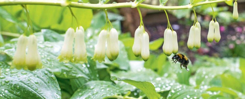 Hübscher Blattschmuck Die Staude entwickelt bogig-aufrechte unverzweigte Stängel, die im Gegensatz zum kantigen Stängel der Wohlriechenden Weißwurz einen runden Querschnitt besitzen. An ihnen wachsen circa fünf bis acht Zentimeter lange, wechselständig und zweizeilig angeordnete, eiförmig-elliptische, parallelnervige Blätter. Sie sind sitzend oder kurz gestielt und einfach. Ihre Oberseite ist dunkelgrün und die Unterseite graugrün bereift. Die Blätter sind auch außerhalb der Blütezeit sehr dekorativ, weshalb die Pflanze auch gerne von Hobbygärtner in Garten angepflanzt wird.