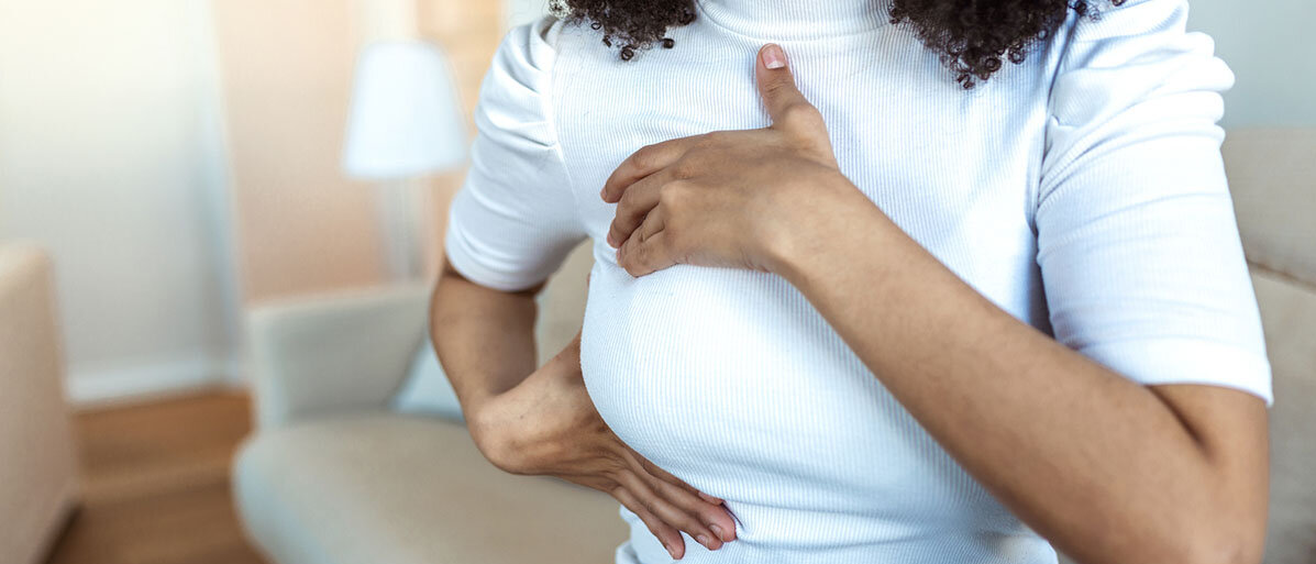 Beim Abtasten geht es vor allem um diese Frage: Bemerke ich neue oder ungewöhnliche Verhärtungen oder Knoten in der Brust? Auch die Achselhöhlen sollte man darauf checken. Fällt Frauen beim Abtasten auf, dass eine Brust zieht, schmerzt oder anschwillt, kann auch das ein Warnzeichen sein. Das gilt ebenso für den Fall, dass aus einer Brustwarze eine Flüssigkeit - klar oder auch blutig - hinausläuft.