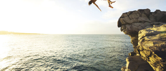 Turnen ist eine gute Basis Wenn man sich die Sportart genau betrachtet, fällt auf, dass ein herausragendes Körpergefühl notwendig ist, um in jeder Phase des Sprungs zu wissen, was gerade passiert. Um das eigene Körpergefühl zu trainieren, Arme und Schultern zu stärken und auch einen stabilen Handstand halten zu können, ist es sinnvoll, sich die Grundlagen des Turnens anzueignen und auch regelmäßig am Stufenbarren, Schwebebalken oder bei Bodenübungen zu trainieren. Training ist wichtig, denn beim Cliff Diving muss man den Sprung so kontrollieren können, dass man möglichst gerade ins Wasser eintaucht. Das Risiko des Sprungs liegt im Aufprall auf das Wasser. Je größer die Höhe ist, aus der man abspringt, umso höher wird die Geschwindigkeit. Beispielsweise taucht man bei einem Sprung, der zwei Sekunden dauert, mit einer Geschwindigkeit von 90 Stundenkilometern ein.