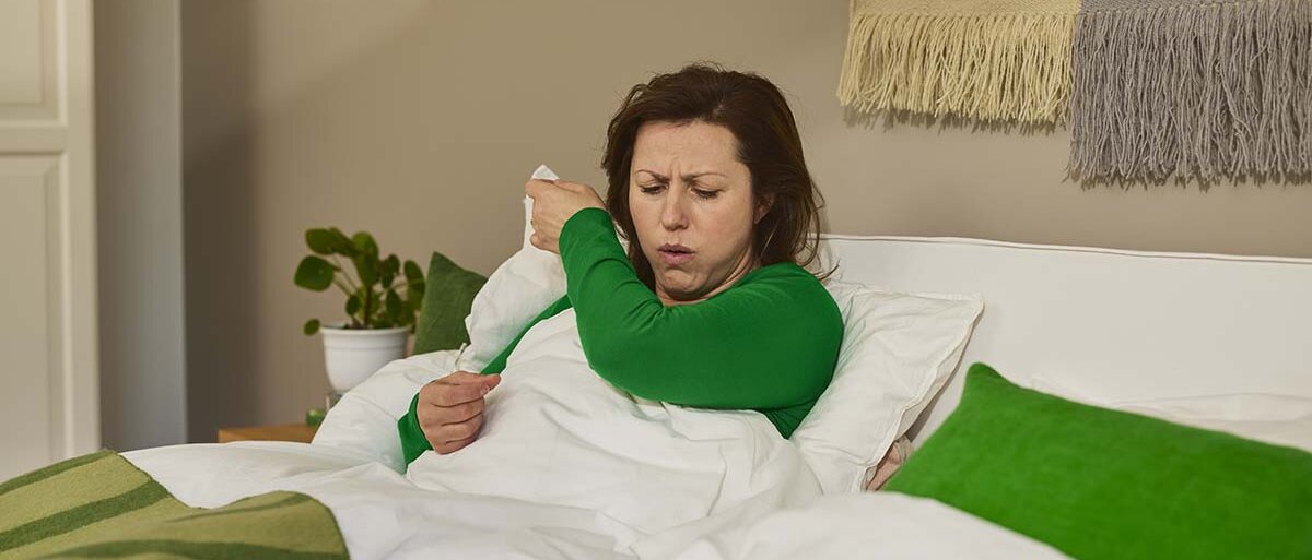 Der Husten ist der Versuch des Körpers, das nicht mehr funktionierende Selbstreinigungssystem der Atemwege vorübergehend zu ersetzen und den Schleim loszuwerden. Husten, auch in einer frühen Phase des Infekts, ist also ein Hinweis auf eine überlastete MCC3. Ist die MCC durch den akuten Infekt gestört, werden Erreger nicht mehr zuverlässig hinausbefördert und das Risiko für eine Ausweitung innerhalb der Atemwege oder Sekundärinfektion steigt3.