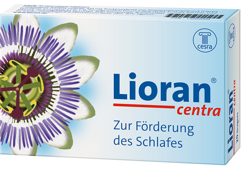 Lioran® centra. Zusammensetzung: 1 überzogene Tablette enthält: Trockenextrakt aus Passionsblumenkraut (Herba Passiflorae incarnatae L.) (5-7:1), 425 mg. Auszugsmittel: Ethanol 50% (V/V). Sonstige Bestandteile: Tablettenkern: Maltodextrin, hochdisperses Siliciumdioxid, Cellulosepulver, Croscarmellose Natrium, Magnesiumstearat (Ph. Eur.) [pflanzlich], Stearinsäure (Ph. Eur.) [pflanzlich], Talkum. Überzug: Sucrose, Calciumcarbonat (E 170), arabisches Gummi, Tragant, sprühgetrockneter Glucose-Sirup, Hypromellose, gebleichtes Wachs, Carnaubawachs, Schellack (gebleicht, entwachst), Titandioxid (E 171), Eisen (III)-hydroxid-oxid x H2O (E 172). Enthält Sucrose und Glucose. Anwendungsgebiete: Traditionelles pflanzliches Arzneimittel zur Besserung des Befindens bei nervlicher Belastung und zur Förderung des Schlafes ausschließlich auf Grund langjähriger Anwendung. Gegenanzeigen: Überempfindlichkeit gegen den Wirkstoff oder einen der sonstigen Bestandteile des Arzneimittels, Kinder unter 12 Jahren. Nebenwirkungen: Keine bekannt. (Stand: 12/2022)