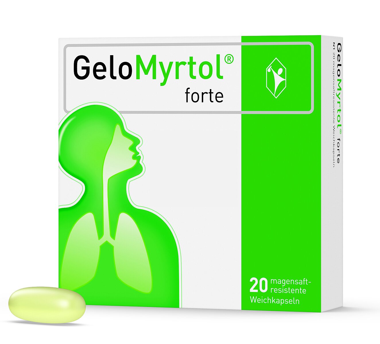 GeloMyrtol® forte. Zus.-Setz.: 1 magensaftresist. Weichkps. enth. 300 mg Destillat aus einer Mischung v. rektifiziertem Eukalyptusöl, rektifiziertem Süßorangenöl, rektifiziertem Myrtenöl u. rektifiziertem Zitronenöl (66:32:1:1). Sonst. Bestandt.: Raffiniertes Rapsöl, Gelatine, Glycerol 85 %, Sorbitol-Lösung 70 % (nicht kristallisierend), Hypromelloseacetatsuccinat, Triethylcitrat, Natriumdodecylsulfat, Talkum, Dextrin, Glycyrrhizinsäure, Ammoniumsalz. Anw.: Zur Schleimlösung u. Erleichterung des Abhustens b. ak. u. chron. Bronchitis. Zur Schleimlösung b. Entzündungen der Nasennebenhöhlen (Sinusitis). Zur Anw. b. Erwachsenen, Jugendlichen u. Kindern ab 6 Jahren. Gegenanz.: Nicht anwenden b. entzündl. Erkr. i. Bereich Magen-Darm u. d. Gallenwege, schweren Lebererkr., bek. Überempfindlichkeit gg. einen d. Bestandt. des Arzneim., b. Säuglingen u. Kindern unter 6 Jahren. Atemwegserkrankungen, die mit einer ausgeprägten Überempfindlichkeit der Atemwege einhergehen, Schwangerschaft/Stillzeit: Anwendung nach sorgfältiger Nutzen-Risiko-Abwägung durch den Arzt. Nebenwirk.: Magen- o. Oberbauchschmerzen, allergische Reakt. (wie Atemnot, Gesichtsschwellung, Nesselsucht, Hautausschlag, Juckreiz), Entzündung der Magenschleimhaut o. der Darmschleimhaut, Übelkeit, Erbrechen, Durchfall o. andere Verdauungsstörungen, Geschmacksveränderungen, Kopfschmerzen o. Schwindel, In-Bewegung-Setzen v. vorh. Nieren- u. Gallensteinen, schwere anaphylaktische Reakt. Enth. Sorbitol. Pohl-Boskamp, Hohenlockstedt (11)