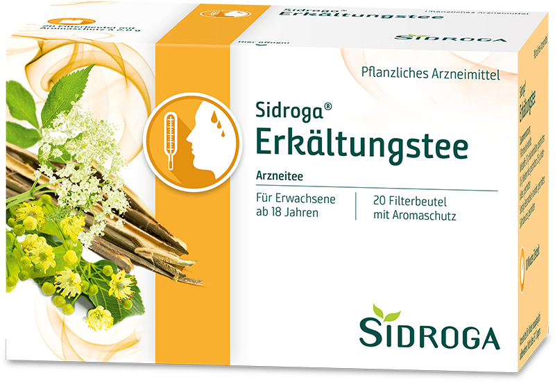 Sidroga® bietet für jedes Erkältungssymptom den passenden Arzneitee: Neben dem Sidroga® Husten- & Bronchialtee helfen auch der Sidroga® Hals- und Rachen-Beruhigungstee (Eibischblätter, Eibischwurzel, Süßholzwurzel, Anis) bei trockenem Husten und Schleimhautentzündungen der oberen Atemwege. Bei Schleimhautreizungen im Mund- und Rachenraum und damit verbundenem trockenen Reizhusten kann hingegen der Sidroga® Reizhustentee mit Malvenblättern helfen. Für Kinder ab 1 Jahr eignet sich Sidroga® Bio Kinder-Erkältungstee. Gegen Entzündungen im Mund- und Rachenraum kommt der Sidroga® Hals- und Rachen-Gurgeltee mit Salbeiblättern zur Anwendung; Sidroga® Erkältungstee unterstützt allgemein bei fieberhaften Infekten.