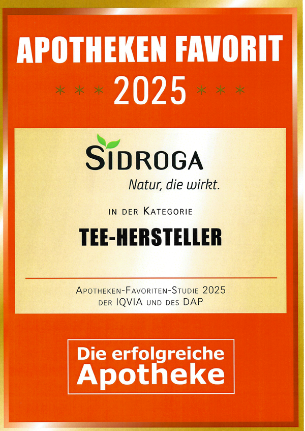 Apothekenliebe in Zahlen: Erneut wurde Sidroga® – wie schon im Jahr 2024 – von Apothekenpersonal zum Tee-Liebling gekürt. Sidroga® erreichte wieder Platz 1 bei der DAP-Befragung und ist jetzt ganz offiziell „Apothekenfavorit 2025“.