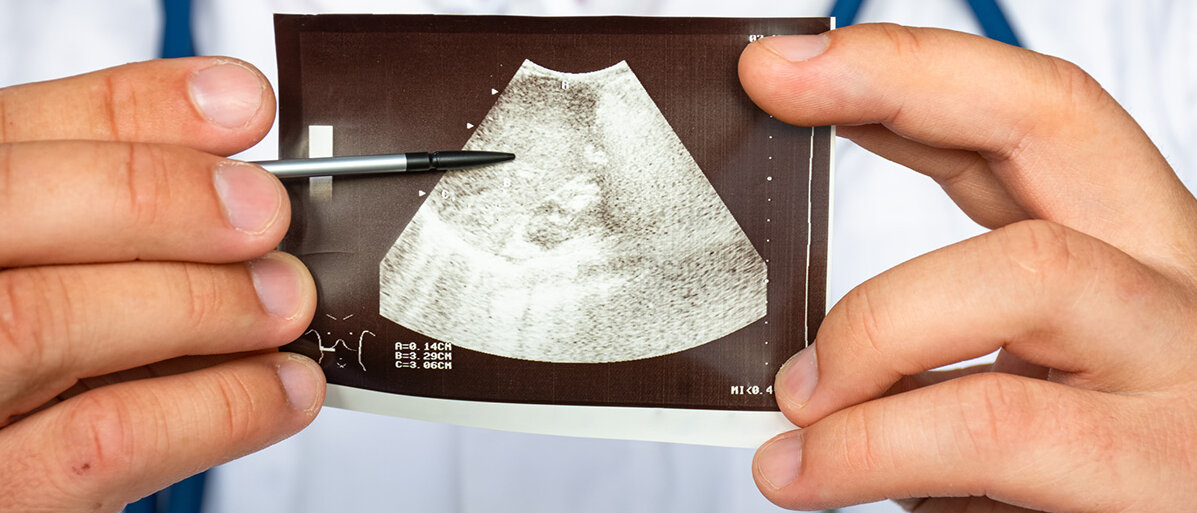 Arzthände halten Ultraschallbild der Leber© Shidlovski / iStock / Getty Images Plus