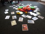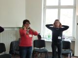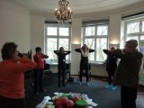 Eindruck hinterlassen Mitten im Raum liegen auf dem Boden verteilt Igelbälle, Stifte, Zettel, Fotos, Korken und vieles mehr, um die fünf Bausteine des Stimmtrainings im anschließenden praktischen Teil erlebbar zu machen. Interessiert warten die PTA darauf, dass es losgeht. Schuhe aus – dicke Socken an, heißt es als erstes, bevor alle locker durch den Raum laufen. Anschließend schnappt sich jeder einen Igelball und rollt mit dem Fuß darüber. Eine schöne Alltagsübung für eine bessere Körperwahrnehmung.