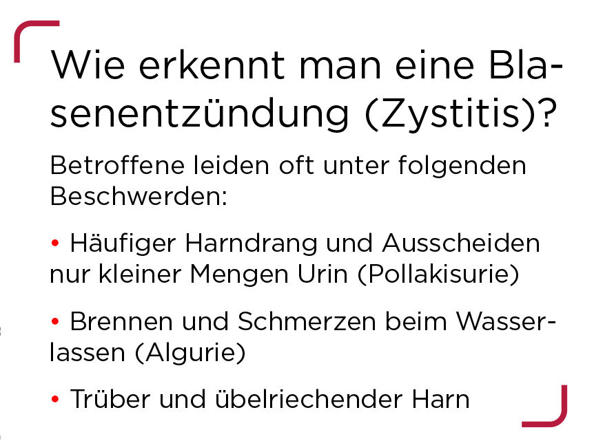 Ach, das übliche: Ich muss andauernd auf die Toilette, aber es kommt immer nur wenig. Und es brennt dabei. Und der Urin riecht dann irgendwann ziemlich übel.
